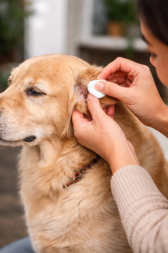 Ears are cleaned with an all-natural herbal ear wash containing a witch hazel base to cleanse and soothe ears without leaving them damp. If your dog appears to have an infection or to be painfully sensitive to the handling of her ears, we will not perform ear cleaning and will recommend a trip to the vet.